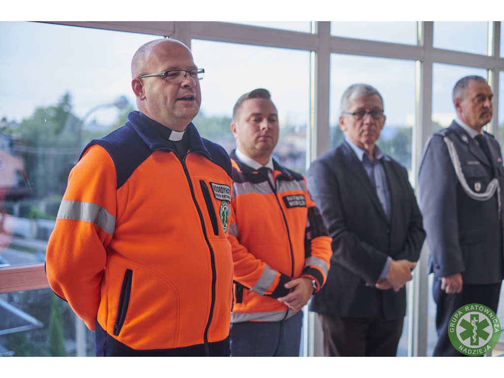 W uroczystości wzięli udział zaproszeni goście: Zastępca Dyrektora Wydziału Bezpieczeństwa i Zarządzania Kryzysowego Podlaskiego Urzędu Wojewódzkiego w Białymstoku generał Mirosław Sienkiewicz, młodszy inspektor Jacek Kumpiałowski- Pierwszy Zastępca Podlaskiego Komendanta Wojewódzkiego Policji w Białymstoku, starszy inspektor Wojciech Macutkiewicz Komendant Miejskiej Policji w Białymstoku, dyrektor firmy Dentomax Kazimierz Klimczuk, prezes Grupy Ratowniczej Nadzieja ks dr Radosław Kubeł, kierownik oddziału Łomżyńskiego Grupy Ratowniczej Nadzieja ratownik medyczny Jakub Zimnoch.
